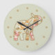 Schöne thematische Wanduhren mit einem Elefanten in einem hübschen Blumenmuster und farblich abgestimmten Hintergrund. Lege diese dekorative Wohngestaltung-Uhr an deine Wände im Stil.