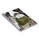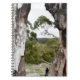 Dieses Bild, aufgenommen in Loddon in Victoria, Australien, zeigt eine nahe Aufnahme eines ausgehöhlten oder teilweise verbrannten Baumstamms, der eine üppige, grüne Landschaft im Hintergrund umrahmt. Die Rinde des Baumes besteht aus einer Mischung aus schwarzen, karierten Flächen und glattem, hellen Holz, möglicherweise aufgrund von Feuer- oder Naturschäden. Durch die Öffnung im Baum sind sanfte Hügel mit viel Grün und verstreuten Bäumen sichtbar. Der Gesamteffekt schafft einen natürlichen Rahmen, der die Komposition tiefer macht, mit dem Kontrast zwischen der rauen, strukturierten Rinde und der weichen, entfernten Landschaft.