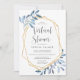 Planen Sie eine virtuelle Dusche statt einer persönlichen Veranstaltung? Bringen Sie Ihre Lieben mit dieser wunderschönen Brautdusche oder Babydusche mit dem Thema Waldbewaldung zusammen. Das Design zeichnet sich durch eine graue Schrift aus, die von einem Imitat mit geometrischer Linienführung gerahmt ist, und ein eisblaues Aquarellblatt, Blätter und Beeren. Eine moderne Wahl in einem natürlichen Farbschema für Bogo- oder Naturthemenduschen, können Sie die Textfelder der Vorlage verwenden, um Details Ihrer virtuellen Ansammlung hinzuzufügen, einschließlich Video-Chat oder Videokonferenz-Link, Registrierungsinformationen und Mailingadresse.
