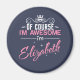 Natürlich bin ich Phantastisch, ich bin Elisabeth - in gemischten weißen und rosa Sans und kursiven Schriftart-Schriften mit weißen Scrollverzierungen und überragt eine weiße Krone. Der Name ist mit weißen Sternen hervorgehoben.