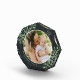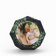 Mit diesem personalisierten, geometrisch geformten, eleganten, Foto können Sie einen besonderen Augenblick, ein Jahr oder einen Urlaub genießen. Graceful Sprigs von tiefgrün lackierten Aquarellmalerei mistletoe rahmen Ihr Foto, mit zwei Feldern für Ihre eigenen Beschriftungen (mit Ihrem Familiennamen und das Jahr).