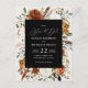 Rustikale Aquarellblütenhochzeit speichern das Datum einladen. Mit schönem Rost, Terrakotta, rot-rosa, schwarz und schlängelgrüne Pampas Gras Eukalyptus Aquarell Details. Diese moderne Hochzeitsfeier lädt zum Set des Stils für Ihren großen Tag ein.