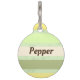 Streifen in einer grünen, gelben und sandfarbenen Naturpalette. Der Name des Haustieres auf der Vorderseite und Kontaktdaten, wenn er auf der Rückseite verloren geht.