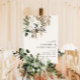 Natürliches bohemianisches, modernes und elegantes Blattwerk stilvolle Hochzeitstagdekoration Begrüßungszeichen. Schöne handbedruckte, getrocknete botanische Aquarellfarben und Schriftzeichen. Modernes Design im Trend.