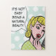 Dieses wunderliches natürliches Schönheits-Comic-Buch-Puzzle ist sicher, ein Lächeln zu Ihren Lippen zu holen. Das Comicbuch inspirierte Ausrüstungsbeschreibungen eine reizende junge Frau, die roten Lippenstift anwendet und eine Spracheblase, die sagt, "es ist nicht einfaches Sein eine natürliche Schönheit." Die Mädchen- und Spracheblase sind auf Eiblau eines Rotkehlchens, Tupfenhintergrund. Dieses ist das perfekte ironische Geschenk für die Prinzessin in Ihrem Leben!
