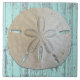 Sand Dollar dekorative Fliesen mit blauem Holzboden. Rustikale Dekoration für einen Zuhause am Meer. Die Kachel ist in zwei Größen erhältlich.