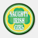 Naughty Irish Girl in großer weißer Schrift mit grünem Kleeblatt Hintergrund in einem Kreis.