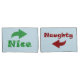 Dieses festliche und lustige Kissenkoffer-Set bietet ein niedliches Weihnachtsthema auf einem weichen, blauen Hintergrund mit Schneeflocken. Das Wort "Naughty" wird in einem skurrilen, roten Glitzer-Schriftart gedruckt, mit einem passenden Pfeil, der auf einem Kissenkoffer verlassen ist. Der zweite Kissenkoffer enthält das Wort "Nice", das in einem grünen Glitzer-Schriftart mit einem Pfeil nach rechts gedruckt ist. Zeigen Sie, ob Sie glauben, dass Sie auf dem unanständigen oder netten Teil der Liste des Weihnachtsmanns gelandet sind.
