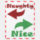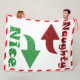 Diese festliche und lustige Weihnachtsdecke bietet ein niedliches Weihnachtsthema. Das Wort "Naughty" wird in einem skurrilen Schriftart im Stil eines roten Glitzer gedruckt, mit einem entsprechenden Pfeil, der auf den verlassen zeigt. Das Wort "Nice" wird in einem grünen Glitzer-Schriftart mit einem Pfeil nach rechts gedruckt. Der Rahmen ist mit einem rot-weiß gestreiften Pfefferminzkerzenmuster versehen. Zeigen Sie, ob Sie glauben, dass Sie auf dem unanständigen oder netten Teil der Liste des Weihnachtsmanns gelandet sind.