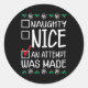 Naughty oder Nice Funny wurde ein Versuch gemacht Runder Aufkleber