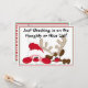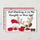 Eine niedliche, lustige und humorvolle Weihnachts-/Feiertagskarte. Der Weihnachtsmann und seine Rentiere, die auf der Liste der Naughty oder Nizza einchecken. Wenn Sie Ihren Text anpassen möchten.