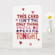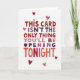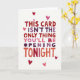 This bold card delivers a confident message right at the center: “THIS CARD ISN’T THE ONLY THING YOU’LL BE OPENING TONIGHT.” The lettering appears in a hand-drawn style that feels personal and intentional, set against a bright white background that keeps the focus on the words. Each letter flows in shades of red, orange, pink, and purple, creating a warm and eye-catching rhythm across the design. Small hearts in red and pink are scattered around the message, adding romance and charm. The balance of color and spacing makes the message easy to read while still feeling intimate and cheeky. This card blends affection, humor, and anticipation, making it a fun and memorable choice for Valentine’s Day. ❤️💌🍫