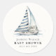 Nauti-Bouy Blue Stripe Sailboat Baby Shower Runder Aufkleber