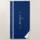 Nautic Add Name Script Navy Blue Striping Strandtuch