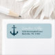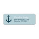 Adressetikett mit nautischem Design, dunkelblauer Anker auf hellblauem Hintergrund.