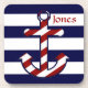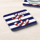 Fügen Sie Ihrer Wohngestaltung mit diesen rot, weiß und blau korkfarbenen Untersetzer etwas Spaß und Farbe hinzu. Ein roter und weißer diagonal gestreifter Anker auf horizontalen Streifen von Weiß und Marine bilden eine klassische und modische Note. Anpassen mit Ihrem Namen oder Monogramm mit einem Initial.