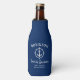Nautical themed Familie Wiedersehen Flaschenkühler stolz zeigen Ihren Familiennamen, Ihr Wiedersehen Datum und Ihre Lage in elegantem Kalligrafieschrift mit stilvollem, modernem Text. Dieses Design beinhaltet ein eigenes Bootanker mit einem weißen Kompass-Boarder in Marineblau oder passt den Hintergrund einfach an jede gewünschte Farbe an.