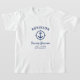 Nautical-themed Familie Wiedersehen-T - Shirt mit Stolz zeigen Ihren Familiennamen, das Datum der Wiedersehen und die Lage in elegantem Kalligrafieschrift mit stilvollem, modernem Text. Dieses Design zeigt ein eigenes Bootanker mit einem Kompass-Stil-Boarder in marineblau auf weiß oder wählen aus einer Vielzahl von Stofffarben und Stilen.