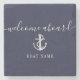 Nautic Anchor Name Navy Blue Willkommen an Bord Steinuntersetzer