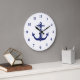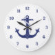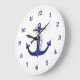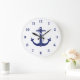 Diese nautisch inspiriert Wanduhr verfügt über einen marineblauen Anker mit Seil. Es gibt Zahlen rund um die Uhr in einer dekorativen marineblauen Typografie und Linien für sowohl Stunden als auch Minuten. Ideal für diejenigen, die den Strand und alle Wassersportarten Liebe.