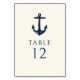 Nautical Anchor Navy Blue Moderne Hochzeitsstiftung Tischnummer
