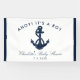 Das nautische Ankerdesign verleiht diesem Baby-Duschbanner eine zeitlose Ästhetik. Mit Ihrem Piraten-Sprichwort und einem marineblauen Anker und Seil, personalisieren Sie Ihre persönliche Note, um ein einzigartiges nautisches Banner für Ihre bevorstehende Babydusche zu schaffen.
