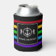 Nautical Anker und Seepferd mit Ihrem Personalisierten Namen oder Bootsnamen auf einem Regenbogen und schwarz gestreiften Can Cooler.