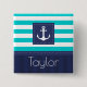 Nautische Taste mit aqua & navy blau gestreiftem Muster und anpassbarem Text.