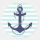 Nautic Aqua & White Stripes Navy Blue Anchor Runder Aufkleber