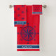Nautic Badezimmer Red White Navy Blue Compass Badhandtuch Set