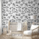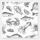 Nautische, schwarz-weiße Schale-und-Stick herausnehmbare Vinyl-Küchentapete mit einer Meeresfrüchte-Skizze-Muster.