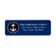 Nautische thematische Rücksendeadressen-Aufkleber. Dieses einzigartige Design bietet ein individuelles Artwork eines Bootsankers und Seils in Schwarz und Weiß auf klassischem Marineblau oder kann den Text und die Hintergrundfarbe nach Belieben anpassen. Um mehr Designs wie dieses zu sehen, besuchen Sie bitte meinen Shop hier unter "Zazzle.com/Anchorisle". Danke.