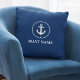 Nautic Boat Name Anchor Rope Throw Pillow Navy Blue
