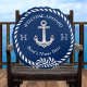 Nautic Boat Name Anchor Rope Navy Blue Rundes Kissen