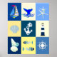 Muscheln, Segelboot, Seestern, Leuchtturm, Anker und Fisch....eine Kornukopie von Segel- und Küstenlebenszeichen in einfachem Stil. Ideal für ein Strandhaus, ein Wassersport-Business, ein Reisebüro oder wo auch immer Sie die Stranddekoration gewollt haben. Passen Sie mit mehr Text oder Bildern Ihren Wünschen an.
