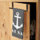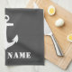 Custom Nautical Classic Anker mit Ihrem Personalisierten Bootsnamen auf einem stilvollen grauen Küchentuch mit weißen Streifen.
