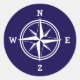 Nautic Kompass Stern benutzerdefinierte Farbe rund Aufkleber. Mach deine eigenen Aufkleber. Marineblau und weiß maritim Ikone mit kühlem Text. Nordost-Südwesten.