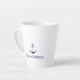 Nautical Custom Boat Name Marine blauen Anker Weiß Latte Tasse. Passen Sie Text nautical sailing text an, den Namen des Kapitäns. Name, Geschäft, Firmenname des Bootes. Modernes, Minimalistisches, schlichtes, elegantes Design, ideal für Segler, Bootsfahrer, Segler und Boote. Alles Gute zum Segeln!