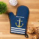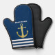 Nautic, Gold Anchor Navy Blue Striping Ofenhandschuh