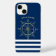 Nautic, Gold Boat Wheel, Navy Blue Stripes Case-Mate iPhone Hülle