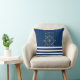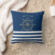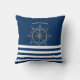 Nautic, Gold Boat Wheel, Navy Blue Stripes Kissen