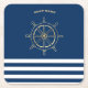 Nautic, Gold Boat Wheel, Navy Blue Stripes Rechteckiger Pappuntersetzer