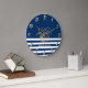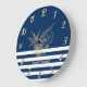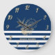 Nautic, Gold Seashells Navy Blue Stripes Große Wanduhr