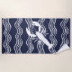 Nautic Hummer Navy Blue White Wave Stripes Beach Handtuch