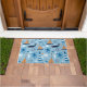 Die hellblaue Türmatte mit orangefarbenen Segelbooten, Krabben, Oktopus, Schiffsträdern, Walen, Leuchttürmen, Seestern und Ankern!