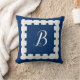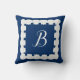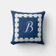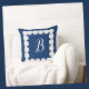 Ihr Monogramm auf einem marineblauen nautischen Kissen mit Muschel-Muschel Muschelgrenze. Klicken Sie auf Personalisieren, um zu Ihren Initialen oder Initialen zu wechseln. Küstendekoration für den Ferienhaus oder Ihr Segelboot.
