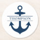 Nautic Navy Blue Anchor Custom Monogram Name Runder Pappuntersetzer