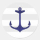 Nautic Navy Blue Anchor Grau White Stripes Runder Aufkleber