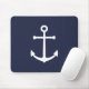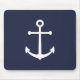 Modernes Minimalistisches Nautical Mouse Pad mit weißem Anker auf marineblau Hintergrund.