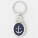 Moderner Minimalistischer Nautical Schlüsselanhänger mit weißem Anker auf marineblau Hintergrund.